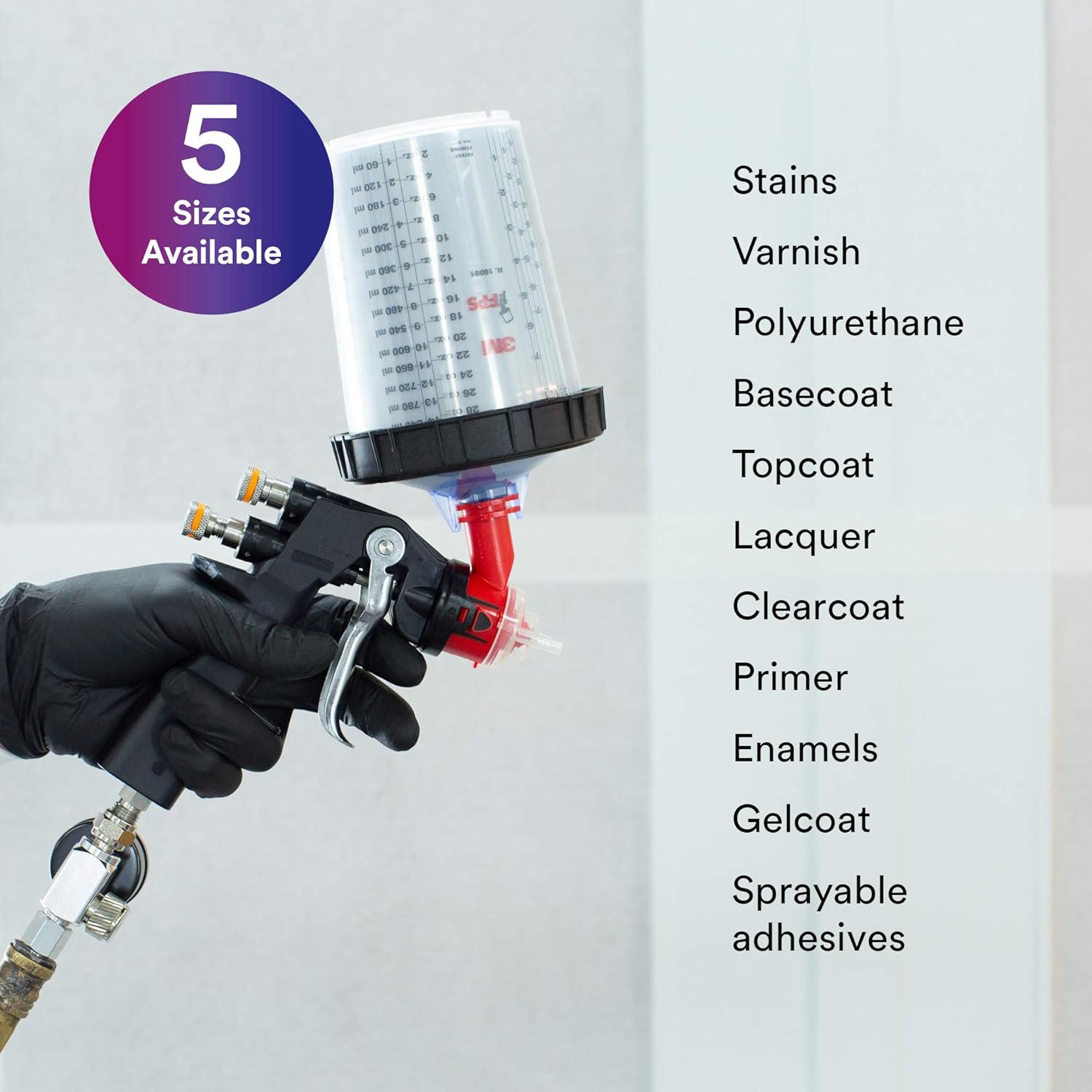 3M PPS (Original Series) Paint Spray Gun Cup Lids and Liners Kit, 16000, Standard, 22 oz, 200-micron Filter, Use w/ Paint Gun for Cars, Furniture, Home, 50 Disposable Lids and Liners, 20 Sealing Plugs, Factory