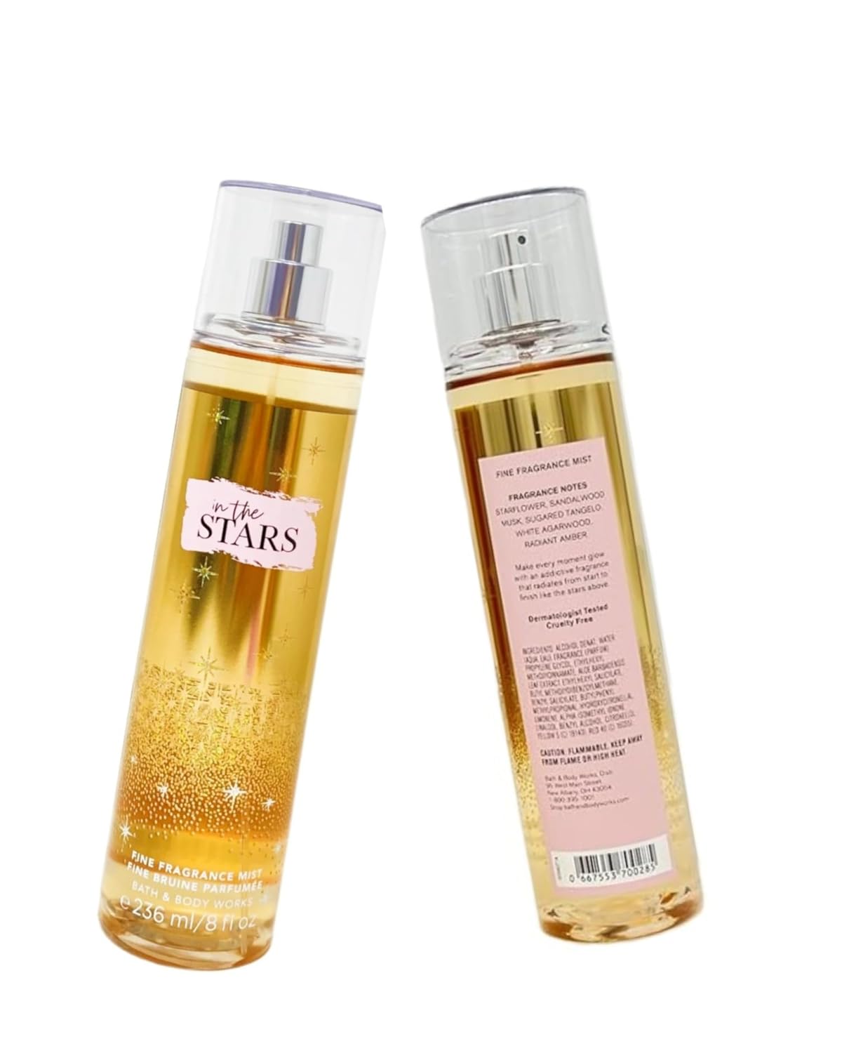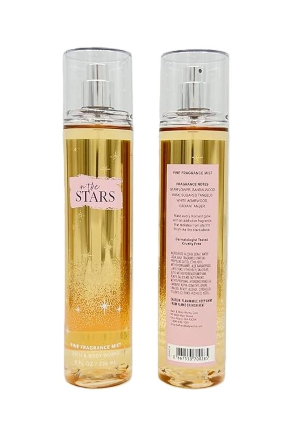 FRAGRANCE Make every moment glow with an addictive fragrance that radiates from start to finish like the stars above. In The Stars is a warm, sparkling blend of starflower, sandalwood musk, sugared tangelo, white agarwood & radiant amber OVERVIEW Add sparkle to any day with our warm & captivating In The Stars Fine Fragrance Mist! Infused with conditioning aloe, it offers the lightest, most refreshing way to fragrance, so whether you lavishly splash or lightly spritz, you’re sure to fall in love at first radiant mist. It’s truly unlike anything on earth!