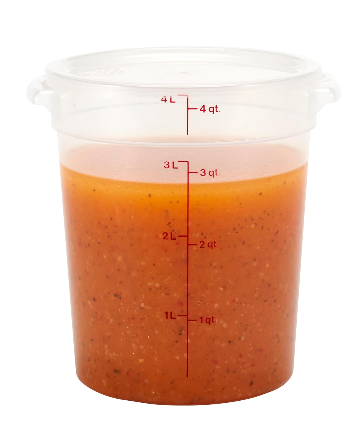 Boost your food storage with the Cambro Round Translucent 4 Qt Container with Lid. This versatile container is designed to meet the demands of both professional chefs and home cooks, ensuring your ingredients and prepared dishes stay fresh and secure.
