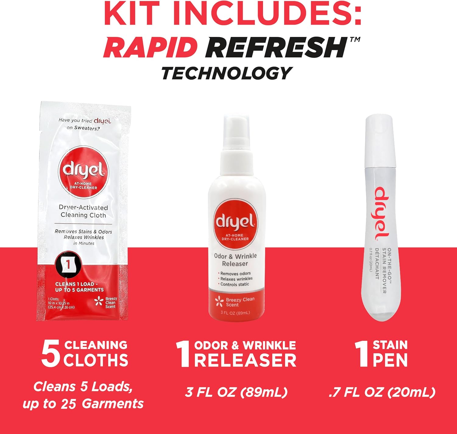 dryel At-Home Dry Cleaner Kit, New and Improved Formula with Rapid Refresh Technology, Gentle Laundry Care for Special Fabrics and Dry-Clean-Only Clothes, 5 Loads