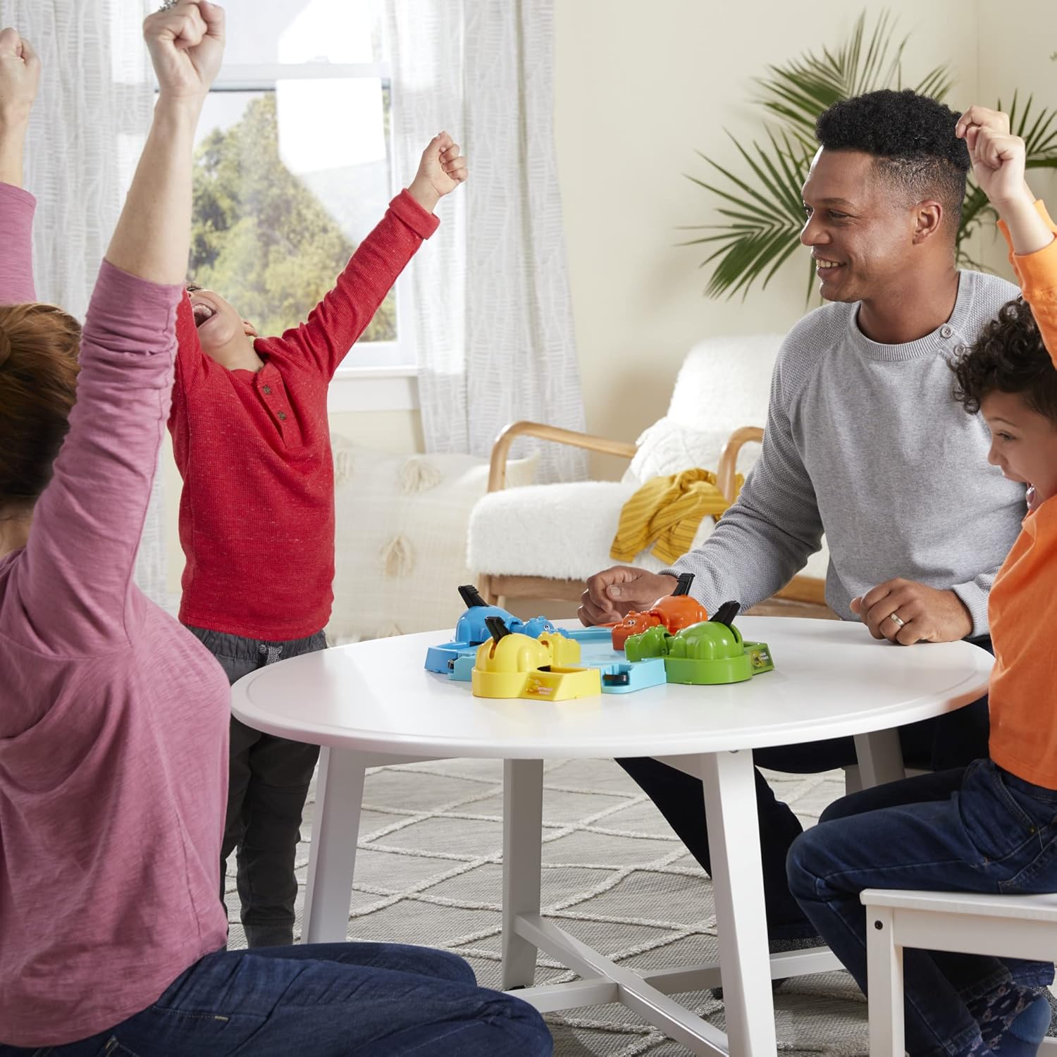 Have a chompin’ good time with this Hungry Hungry Hippos game! Once players release the marbles, the feeding frenzy begins! They’ll need to move fast because all the hippos around the board will be chomping at the same time. The faster a player presses their hippo’s tail, the faster it will eat the marbles. This fun and easy to learn preschool game lets kids choose 2 different ways to win: gobble up the most marbles, or be an instant winner by chomping the golden marble. Plus, it features convenient storage for the 20 marbles, making cleanup time a snap! A beloved children’s game for ages 4 and up, it’s one of the best family games for game night and a laugh-out-loud indoor game for kids playdates. Looking for fun gifts for kids? Preschool board games for families make great gifts for girls and boys any time of the year! Hungry Hungry Hippos and Hasbro Gaming and all related properties are trademarks of Hasbro.
