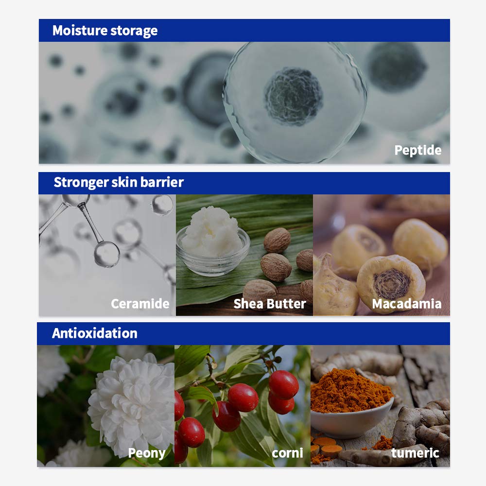 - 🌿 3-LAYER SKIN BARRIER – Ceramide in the cream plays the role of mortar which prevents moisture evaporation, adjusting oil and moisture balance properly while reinforcing an imbalanced skin barrier. Moreover, Shea Butter and Macadamia seed oil nurishes dry skin and reduce sebum resulting from aging skin.