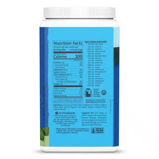• Sunwarrior’s top priority is providing the cleanest, highest-quality ingredients in our products. We take your lifestyle seriously with no synthetics, no fillers, and absolutely no animal products. We utilize an ISO-Certified, third-party lab to conduct all our heavy metals and micros testing.