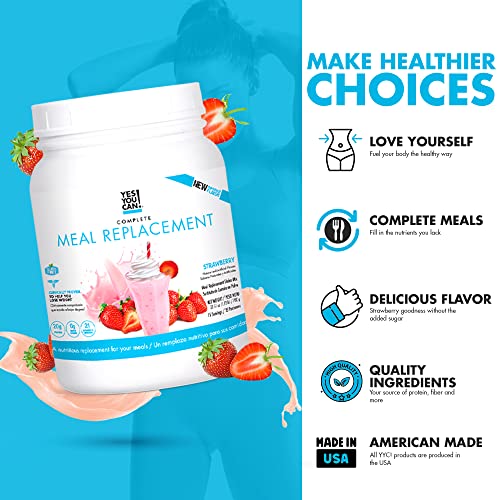 Yes You Can! Complete Meal Replacement – 15 Servings, 20g of Protein, 0g Added Sugars, 21 Vitamins and Minerals – All-in-One Nutritious Meal Replacement Shake (Strawberry)